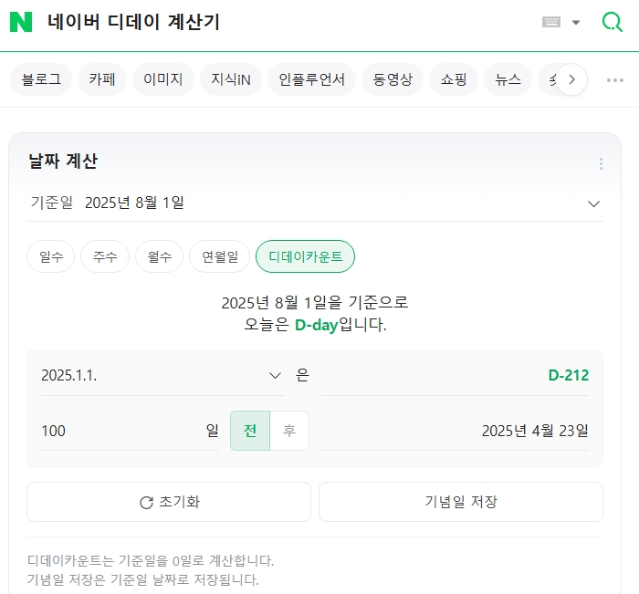 - 네이버 “디데이 계산기” 검색